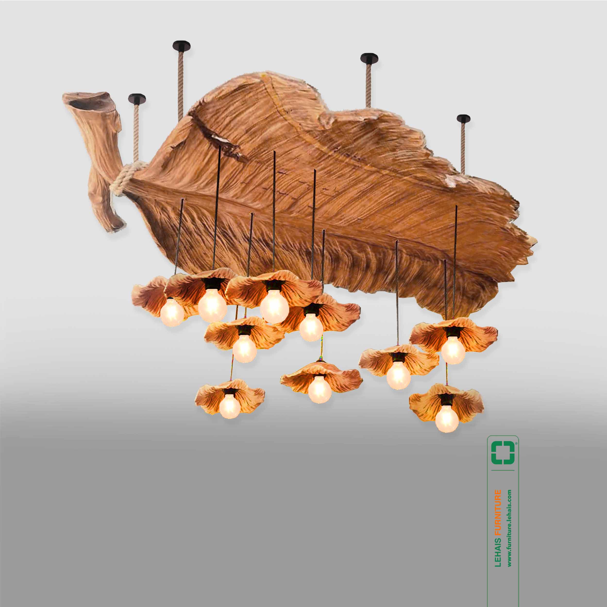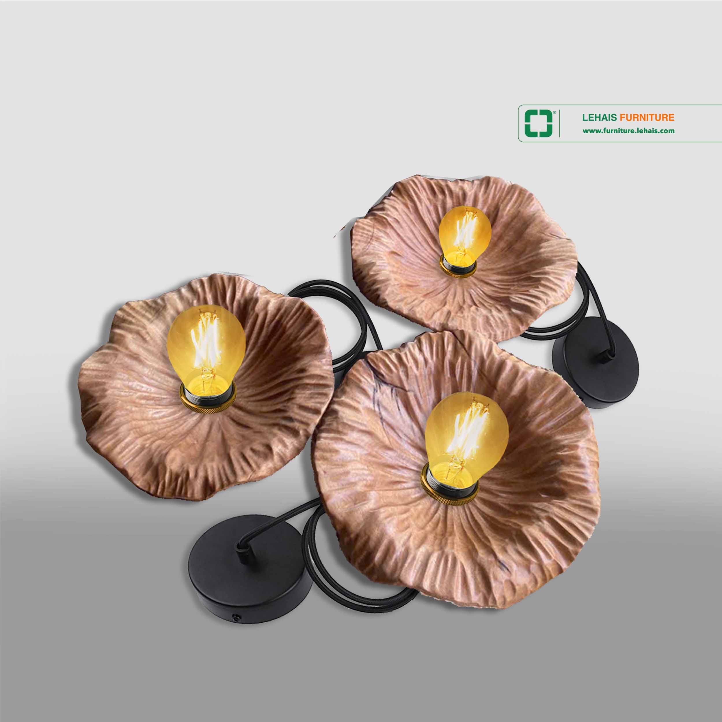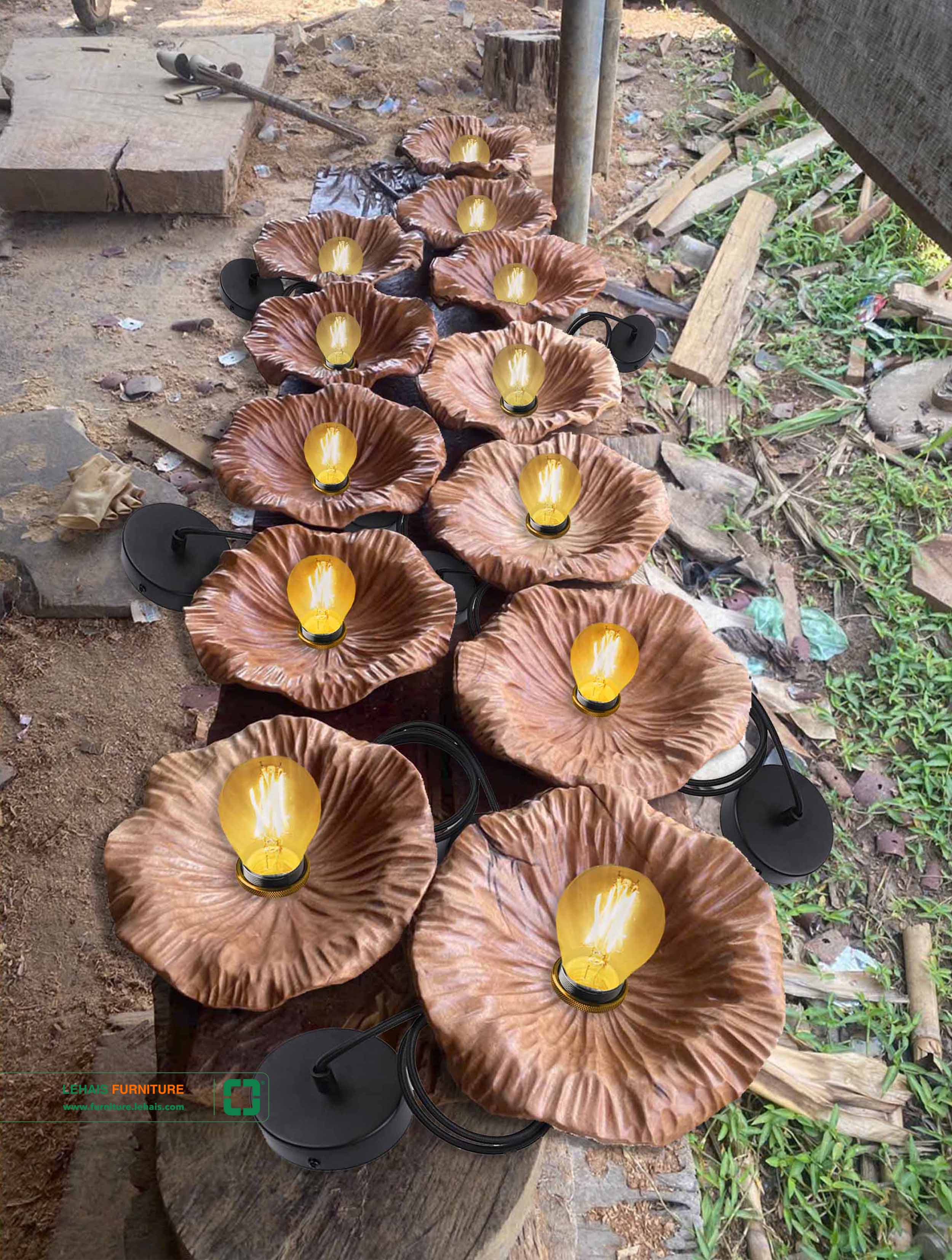 Đèn trang trí làm từ Chao Gỗ Lũa Tự Nhiên hình Lá Sen - D64LHFU