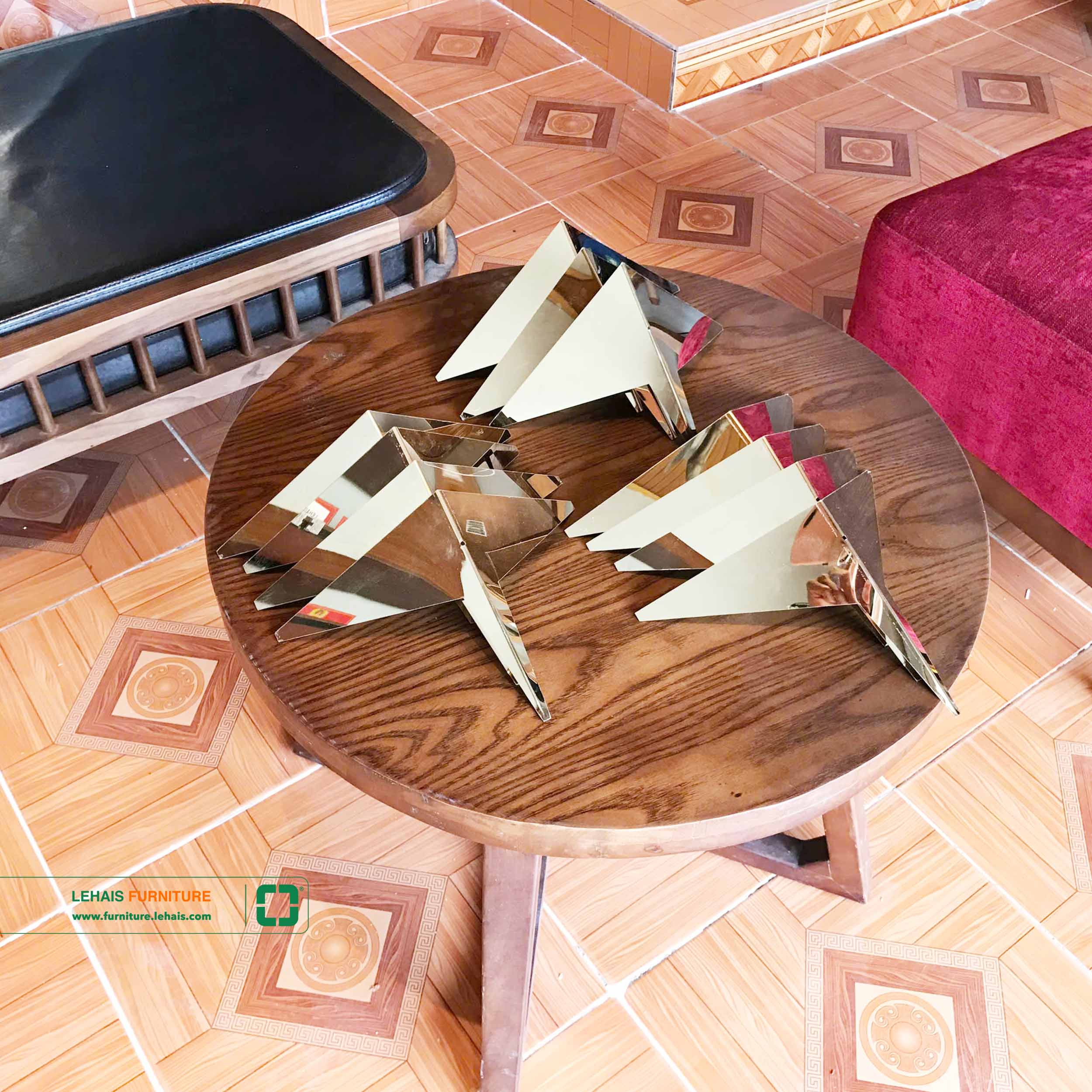 Chất liệu inox mạ vàng: Kim loại inox đảm bảo độ bền, chống gỉ sét; lớp “mạ vàng” giúp bề mặt bóng, sang trọng mang lại vẻ ngoài cao cấp và dễ phối hợp với các nội thất hiện đại. Việc “mạ vàng” tương đương kỹ thuật “gilding/plating” giúp tạo ánh kim mà không cần kim loại vàng thật.