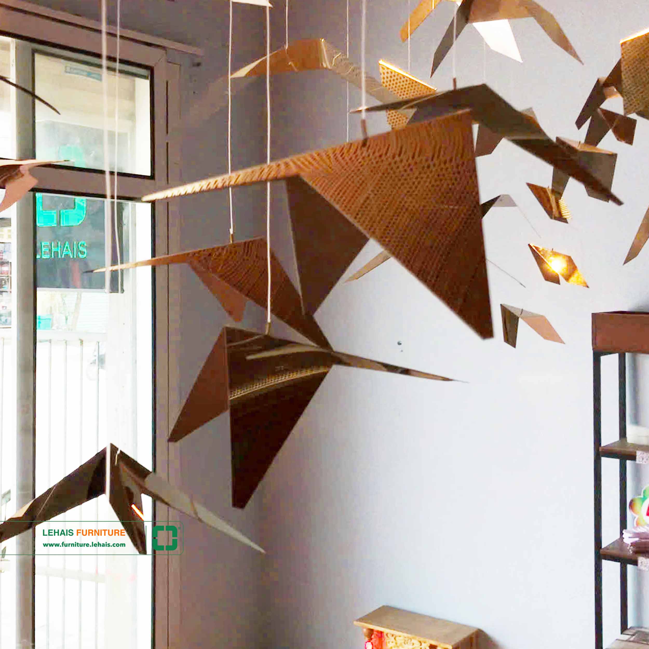 Thiết kế hình chim cách điệu: Sản phẩm có hình dáng một “con chim” được cách điệu phù hợp làm điểm nhấn trang trí trên trần nhà, tạo vẻ sang trọng, nghệ thuật và tinh tế cho không gian sống hoặc các khu vực như phòng khách, tiền sảnh, quán café, nhà hàng.